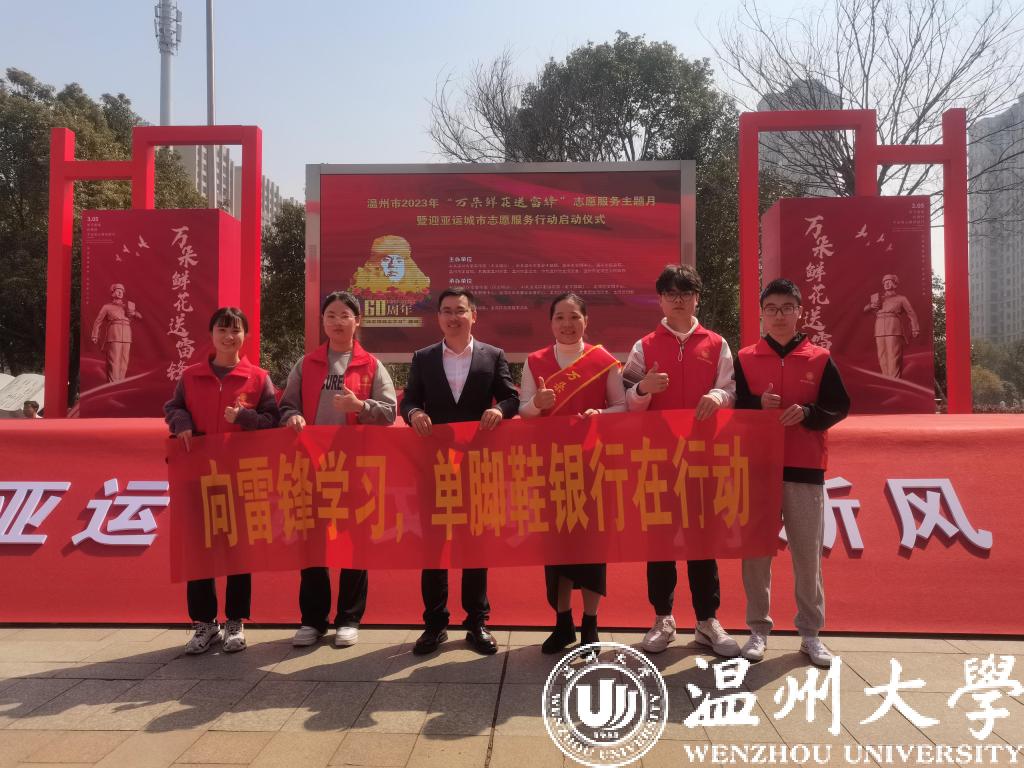 3月5日上午,温州市“万朵鲜花送雷锋”志愿服务主题月暨迎亚运城市志愿服务行动启动仪式在龙湾区新时代文明实践活动中心举行,成人网站 单脚鞋银行志愿服务队参加了本次现场活动并在志愿服务集市中为群众开展服务。