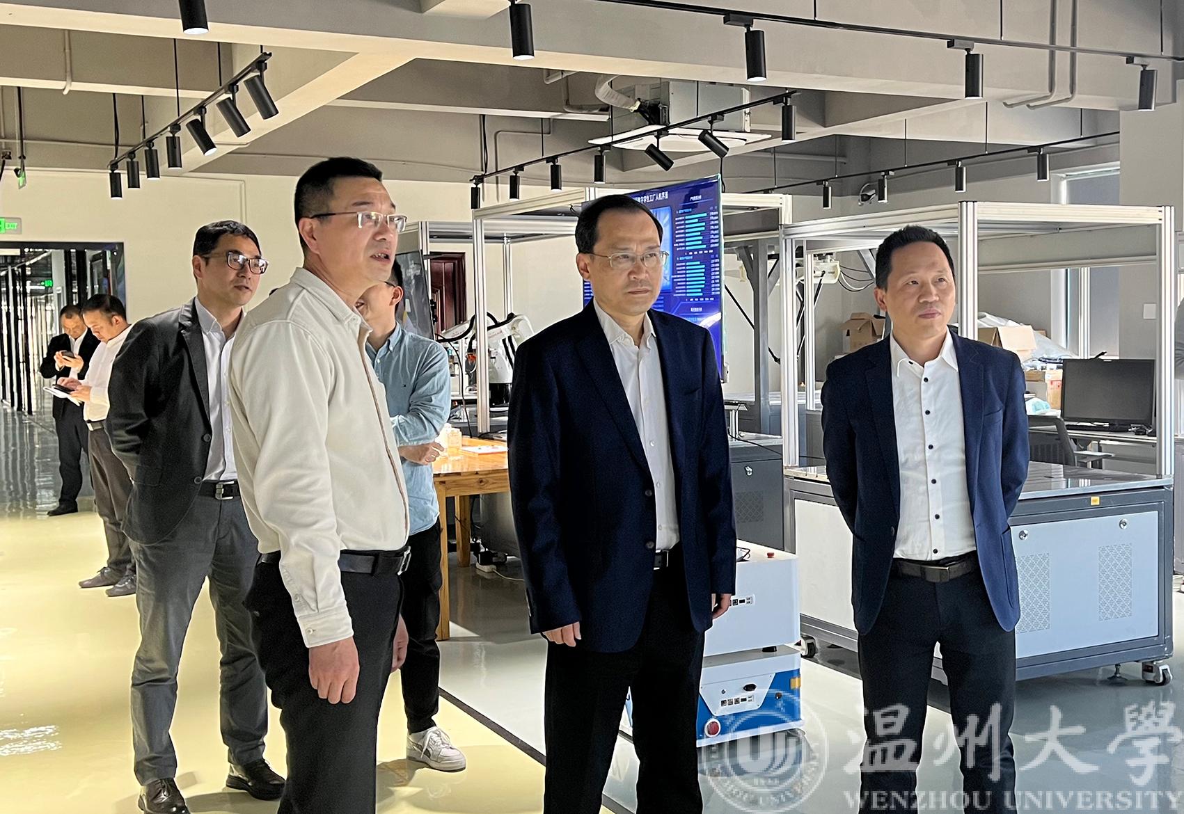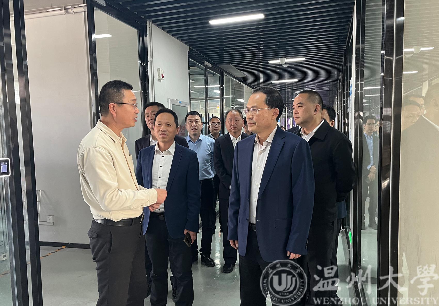 3月10日,温州市政协主席陈作荣一行来乐清调研科技创新和政协工作,莅临成人网站 乐清工业研究院实地考察平台项目建设情况,成人网站 副校长王舜、温州市科技局副局长朱勇敏、乐清市副市长叶序峰等陪同,研究院院长林振权、副院长吴自然等热情接待并汇报科技创新及服务企业工作。