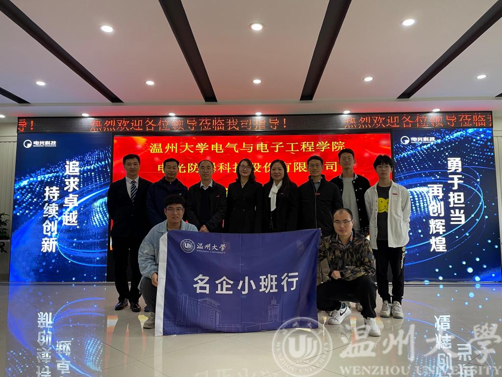 为更好地加强校企合作,开拓岗位,2023年3月24日上午10:00,成人网站 党委副书记曾蓓蕾、电气工程学科带头人郭凤仪教授、电气系李富华老师、就业辅导员屠昌浩以及成人网站 三名博士研究生和硕士研究生共同前往温州乐清的电光防爆科技股份有限公司开展访企拓岗暨名企小班行活动。公司董事长石晓霞一行热情接待。