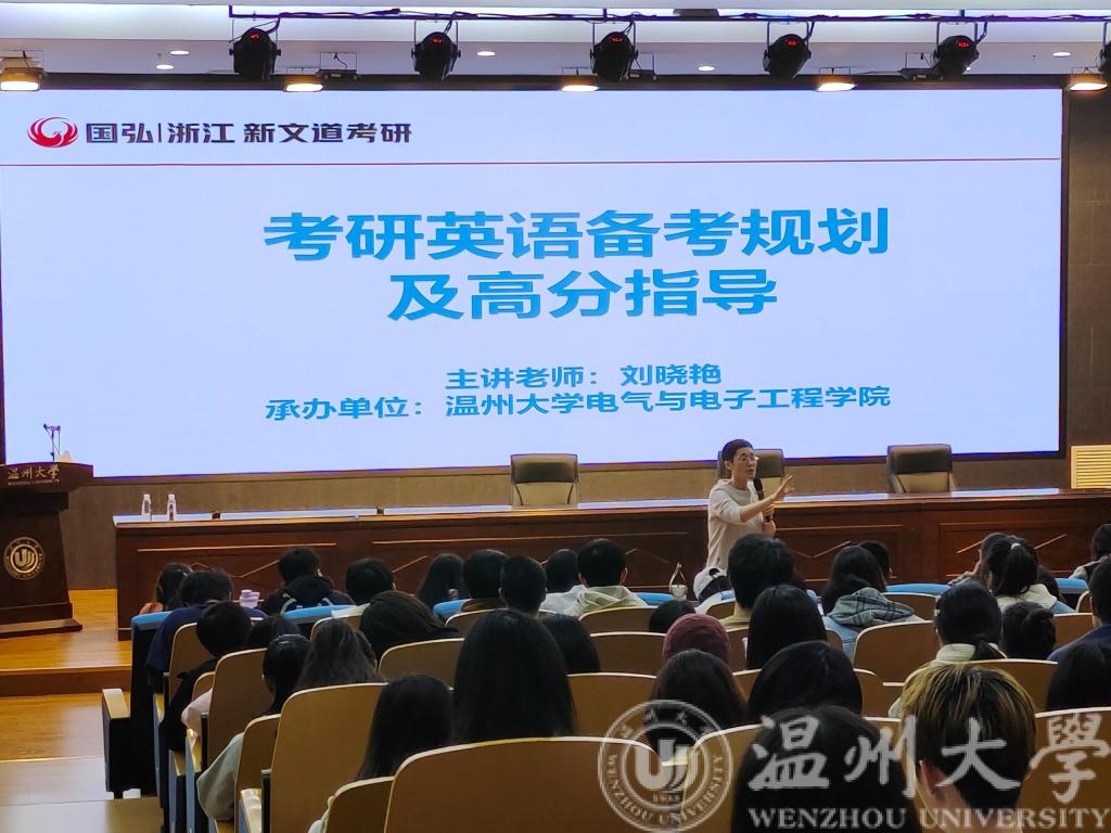 为进一步营造积极向上的考研氛围,助力学生规划考研之路,2023年3月31日下午14:40,成人网站 联合浙江新文道考研机构在岩松堂步青厅开展考研英语专题讲座。本次讲座邀请到国内考研英语名师刘晓艳为同学进行英语备考规划和指导。本次讲座吸引了近300余名同学参与。