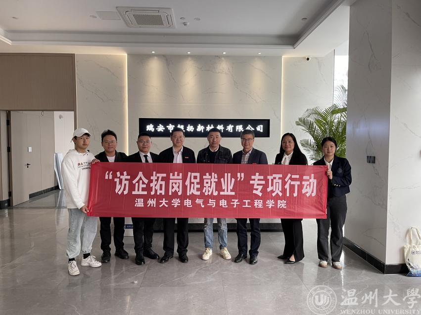 在九十周年校庆即将到来之际,为了更好地加强与校友间的沟通交流,搭建母校与校友们的互动平台,同时也为了促进毕业生留温以及学生的高质量就业,4月12日,我校党委委员、组织部部长郑信军及电气与电子工程成人网站 党委书记李方强、党委副书记曾蓓蕾、实验中心教师王环、学工办辅导员屠昌浩一行人带领学生走访了校友企业——瑞安市超扬新材料有限公司。该公司系成人网站 05届校友岑帆于2010年11月创办,主要经营范围为新型材料包装产品制造、销售等。
