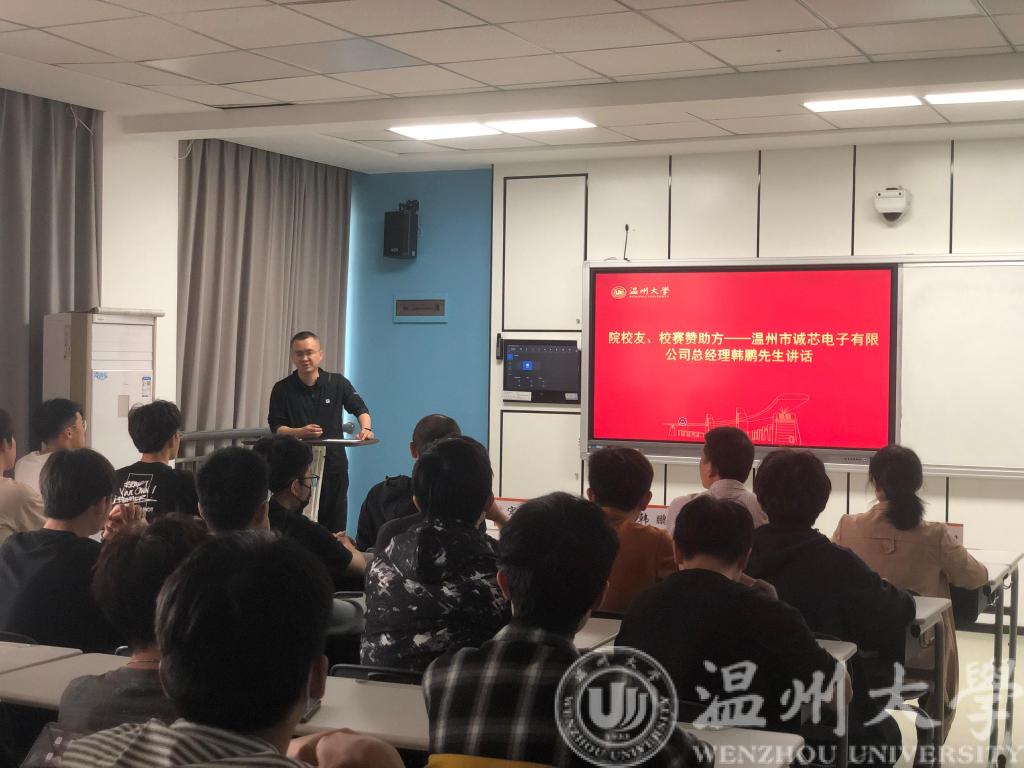 首先,韩鹏先生为大家分享他的创业经历、电子人生。同时他高度赞扬了这类专业技能活动对学生实践能力的培养和锻炼,同时还鼓励学生积极参加省内外各类竞赛,希望能再接再厉在以后的比赛中取得更好的成绩。