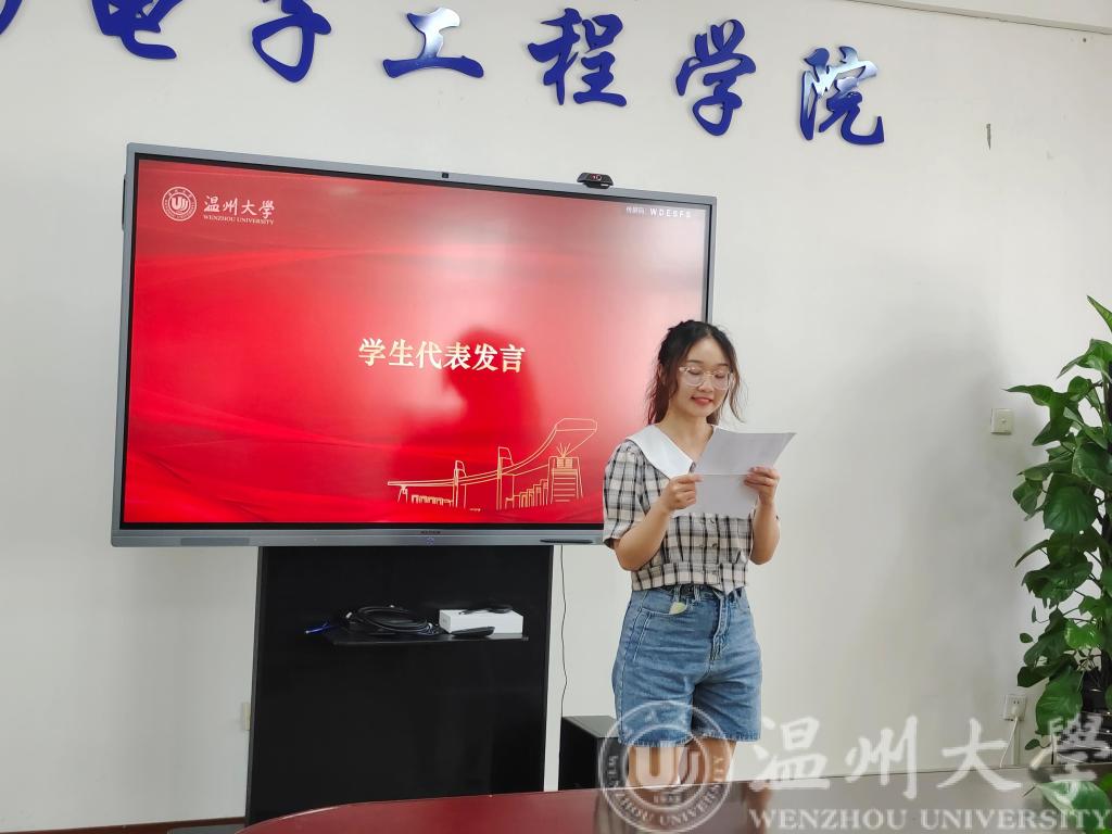 少数民族奖助学金获得者代表,2023届毕业生韦峦芳同学进行发言。韦峦芳同学分享了自己大学四年的求学经历,并提醒学弟学妹们一定要认真学习。“能够获得少数民族专项奖助学金对我来说不仅仅是经济上的帮助,更是精神上的动力来源。因为它让我真切感受到,努力虽然辛苦,但终将是有回报的!这也让我对今后的学习、工作以及生活充满信心和希望。”