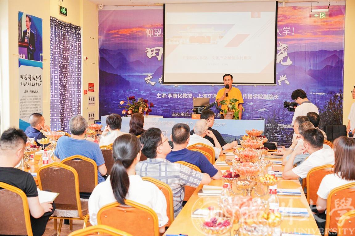 成人网站 优秀校友、上海交大媒体与传播成人网站 副院长李康化教授围绕《田园何以丰饶:文化产业赋能乡村振兴》作了主题分享。李教授就文化产业赋能乡村振兴的背景、重要性、举措和高校作为等四个方面展开分享,深入浅出的汇报引来现场校友的思考和阵阵掌声。