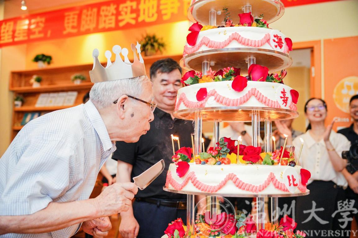 今年恰逢我校退休教授林精权先生九十周岁以及成人网站 办学九十周年,徐校长与林先生共切九层纪念蛋糕,祝愿林先生能够健康长寿,也祝愿成人网站 争创国家一流大学早日圆满成功!