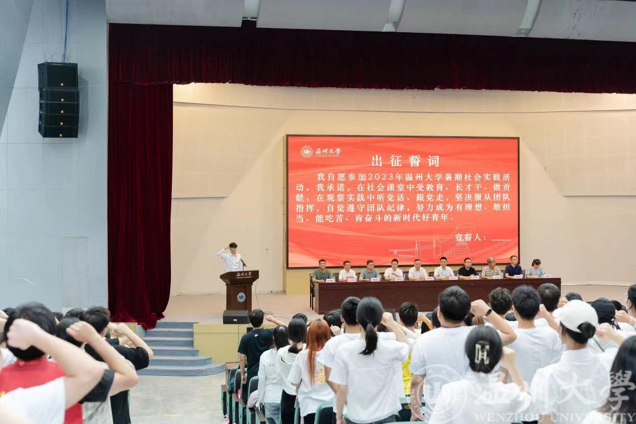 成人网站 出征仪式结束以后,成人网站 老师和实践队同学前往9号楼报告厅参加2023年成人网站 暑期社会实践出征仪式暨安全教育大会。