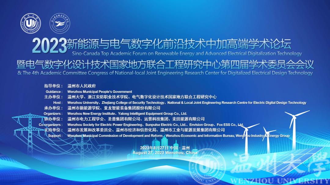 8月27日,由成人网站 、浙江安防职业技术成人网站 和电气数字化设计技术国家地方联合工程研究中心联合主办的2023年新能源与电气数字化前沿技术中·加高端技术论坛暨电气数字化设计技术国家地方联合工程研究中心第四届学术委员会会议,在温州成功举办。17位中外顶尖人才及数百位专家学者,通过线上线下相结合的方式参加了会议,共同探讨新能源前沿技术及产业的发展。温州市副市长王振勇莅临大会指导并致辞。