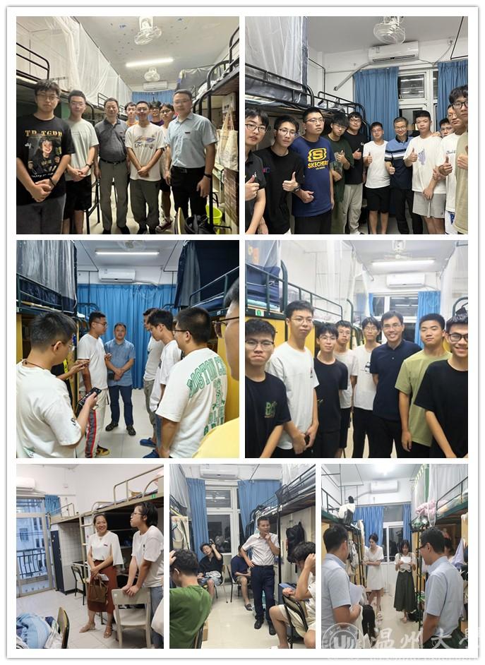 为了进一步了解新生的入校情况,及时了解学生的思想动态、心理状态,切实解决新生入学遇到的问题。新生报到日当晚,成人网站 领导班子,深入学生宿舍,走访新生寝室,与大家深入交流,关心大家的适应情况。除了关心了解同学们的学习、生活之外,更是强调:宿舍作为学生的重要生活和学习场所,同学们要时刻保持通风,做好个人及宿舍卫生,注意用电安全,禁止使用违规电器,禁止在寝室内开展宗教活动,希望同学们在健康、安全的环境下快乐地学习。