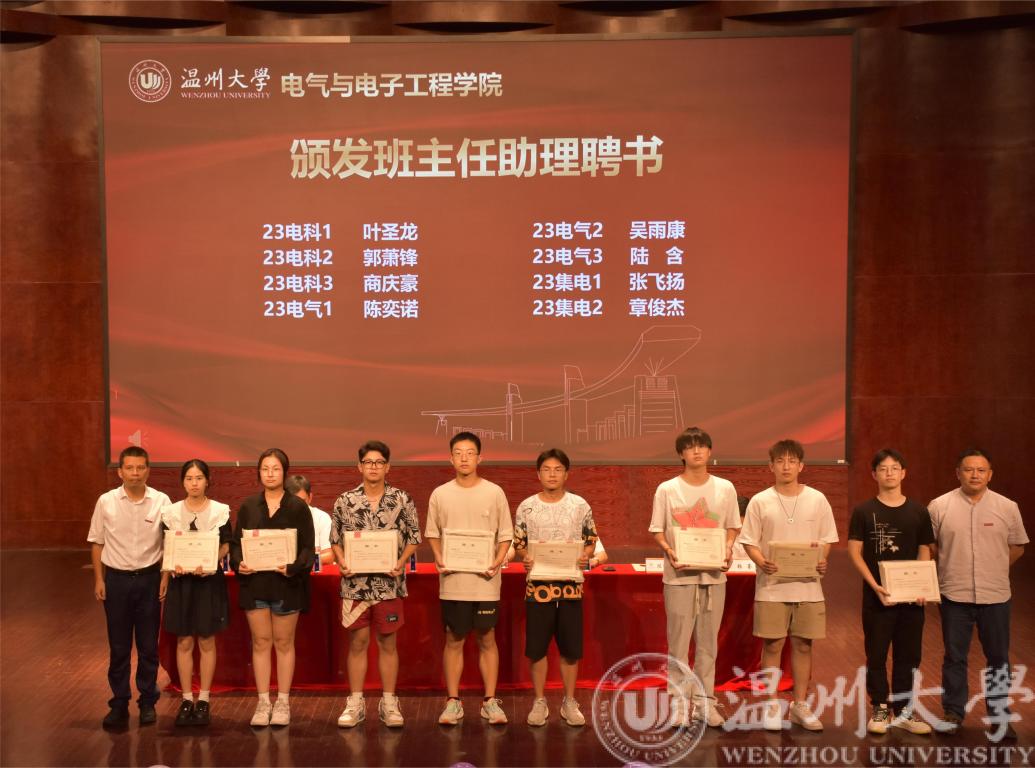 成人网站 副院长朱翔瓯、副院长陈孝敬为各位新生班级班助颁发班主任助理聘书,并赠送纪念品,感谢班助的辛勤付出。研究生代表23电子信息专业任世茂、本科生代表23电科2班郑博文,分别上台代表研究生和本科生新生发言。