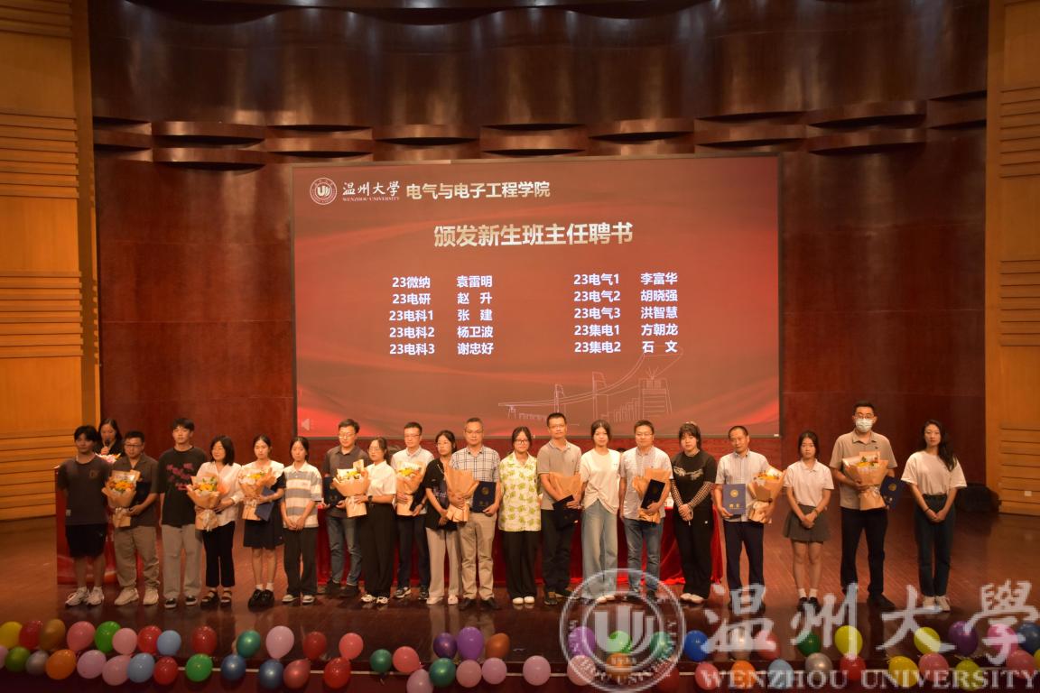 成人网站 院长汪鹏君、党委书记李方强为23级新生班主任颁发班主任聘书。新生代表走上前台代表各自班级向班主任献花并行感恩礼。