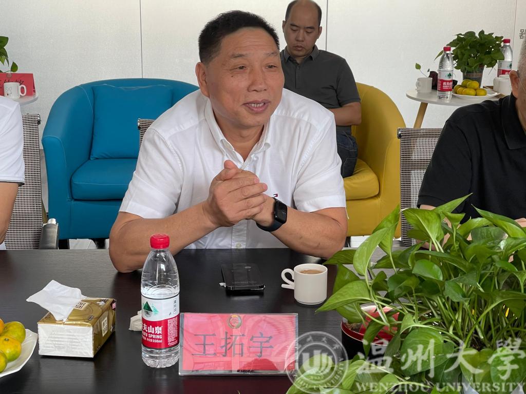 为进一步加强学校与地方校友会的沟通交流,探索学校与地方校友会的合作发展新模式,9月26日上午,成人网站 党委书记李方强、党委副书记曾蓓蕾、成人网站 乐清工业研究院副院长舒亮一行赴乐清走访温大乐清校友会及校友企业,洽谈乐清校友会和成人网站 结对合作事宜。乐清校友会会长王拓宇、副会长兼秘书长张俊生、副会长王孝新等六位校友代表热情接待并出席恳谈会。