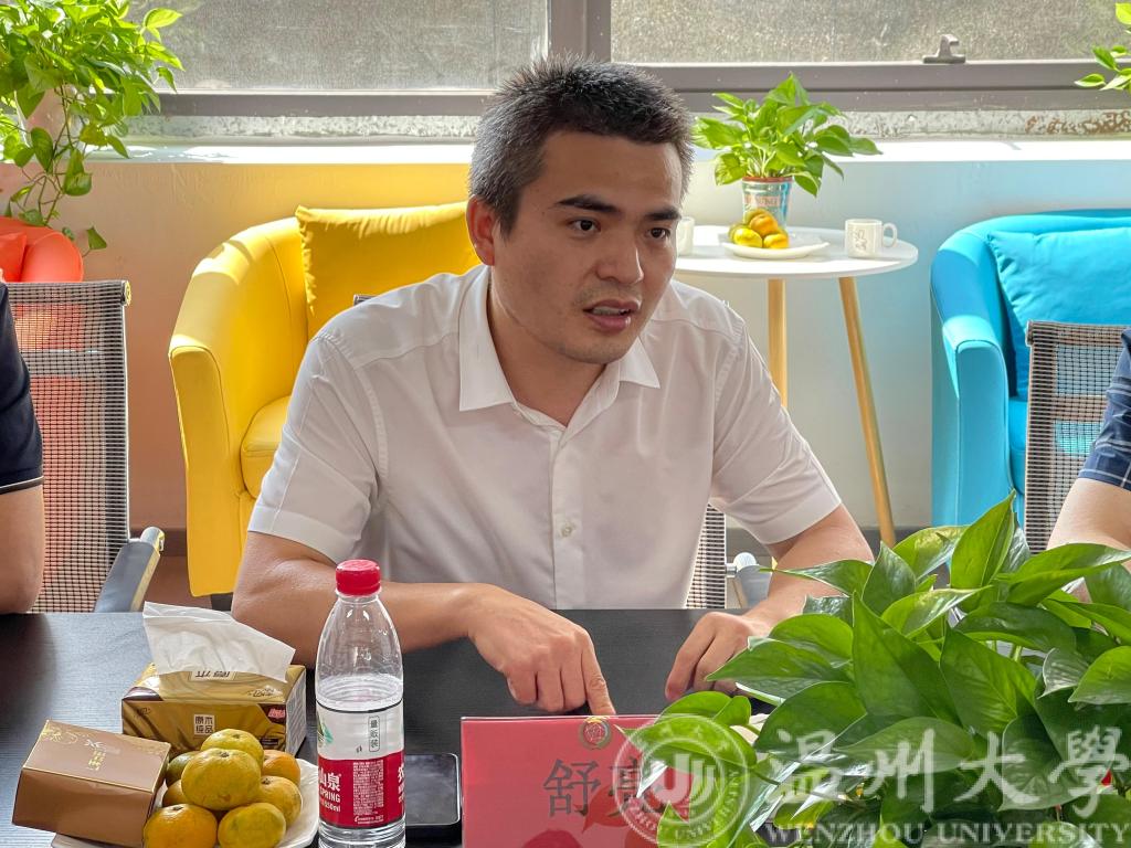 乐清校友会会长王拓宇向成人网站 党委书记李方强带队走访乐清校友会表示热烈欢迎。他向与会各位介绍乐清校友会以及校友企业的相关情况,他表示,综合考虑乐清的产业布局与发展现状,最终决定与成人网站 结对合作。他希望乐清校友会在与温大电气与电子工程成人网站 高质量对接合作之下,乐清校友会能够更好地服务于广大校友,更好地服务乐清电器产业发展。