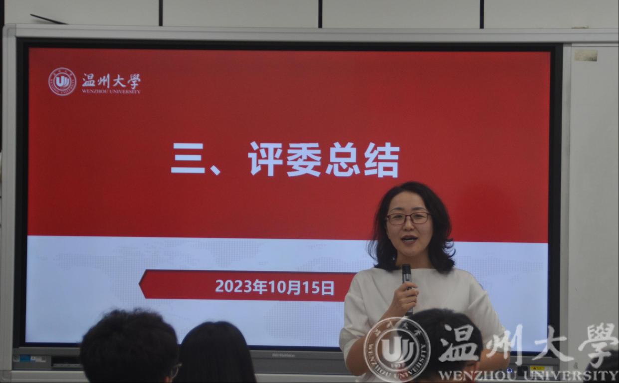 所有选手展示完毕后,朱丽莉老师作为评委代表总结发言。她赞扬了成人网站 大一新生踊跃参赛的热情,并建议同学们不要拘泥于模板,既要仰望星空,又要脚踏实地:首先,同学们的职业规划要能结合经济社会发展的需要,要有情怀;其次,同学们对目标职业要有充分的了解;最后,职业规划大赛作为一项比赛,同学们要注重一些外在的要素,例如着装、PPT等。
