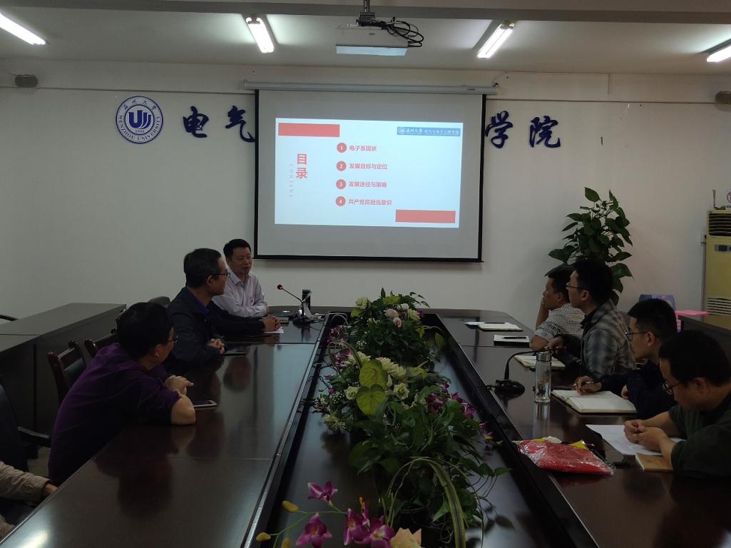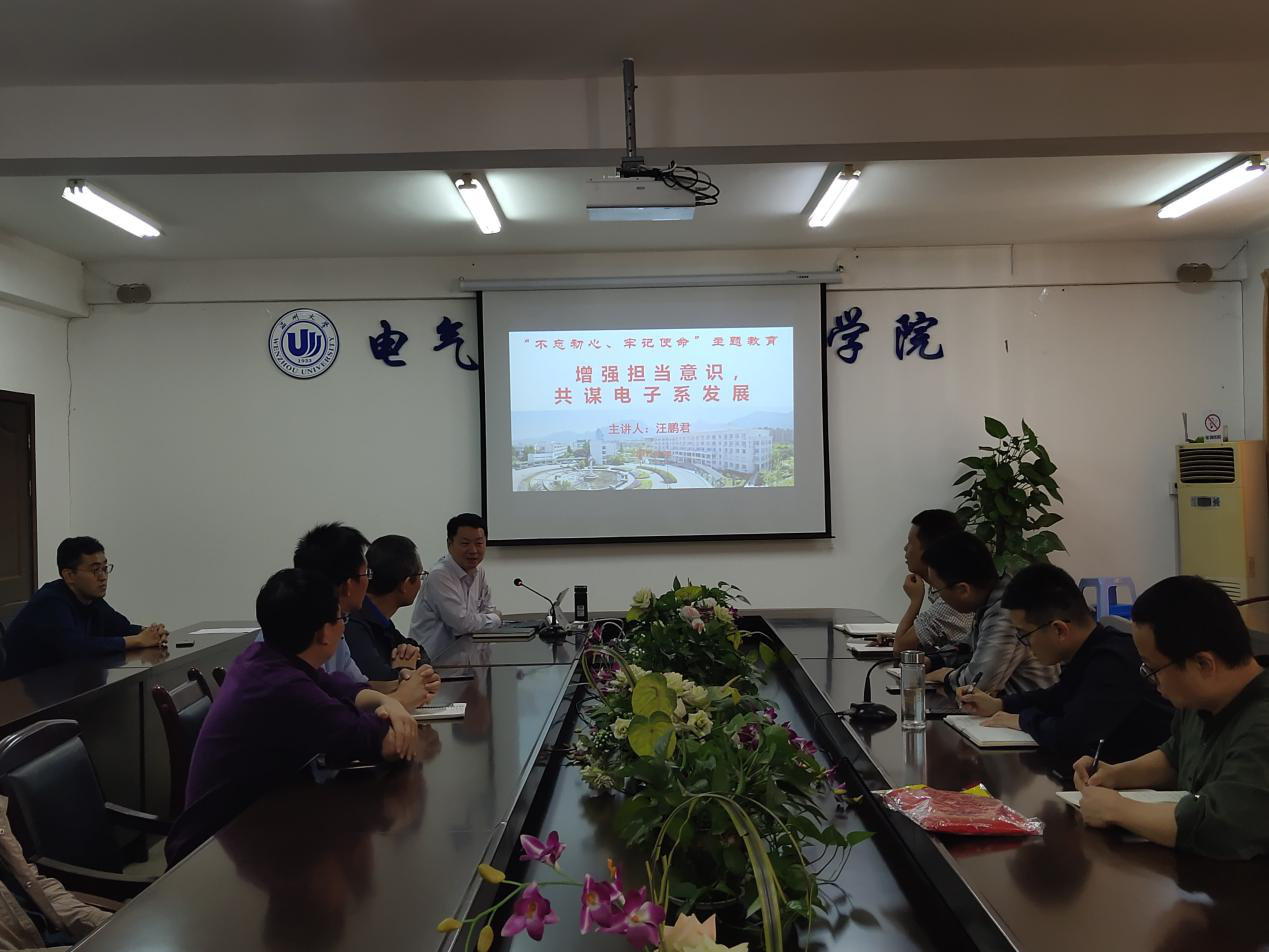 10月30日下午,成人网站 电子系在1A502召开“不忘初心、牢记使命”主题教育学习会,系部全体教师参加了本次学习会。在本次学习会上,汪鹏君院长作了题为“增强担当意识,共谋电子系发展”的主题党课。汪院长围绕电子系现状、发展目标与定位、发展途径与策略、共产党员担当意识四个方面,深入阐述了电子系现阶段“发展如何”以及“如何发展”的问题,提出了一系列富有建设性的意见,为专业和学科的下一步发展指明了方向。随后,与会教师逐一发表了自己的观点,并就一些具体问题展开了热烈的讨论。