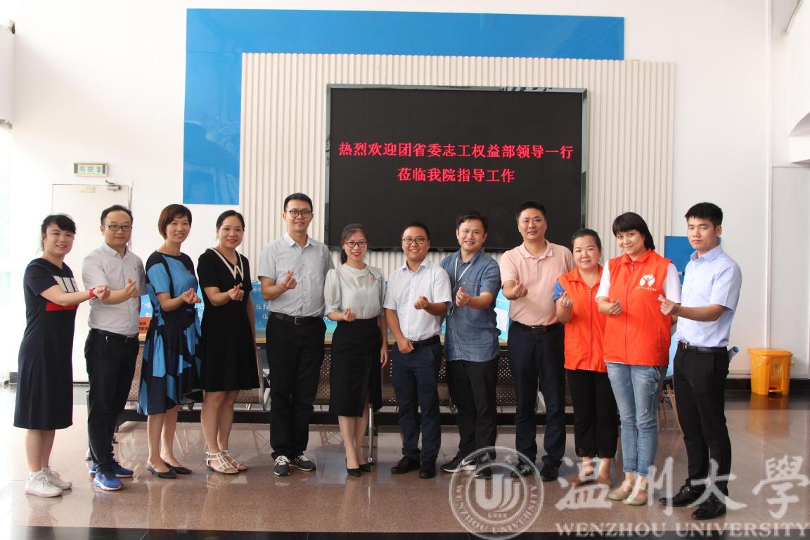 7月3日下午14:00,团省委志工权益部干部陈晓雷、浙江省青年创业就业基金会秘书长王军、团省委志工权益部挂职干部梁世正 、团温州市委志愿工作部部长郭乐家一行莅临成人网站 ,就共青团青年志愿服务工作召开了座谈会议,成人网站 团委副书记易招娣、成人网站 副院长朱翔鸥、党委副书记曾蓓蕾、温州一八二义工协会相关负责人参与了会议。