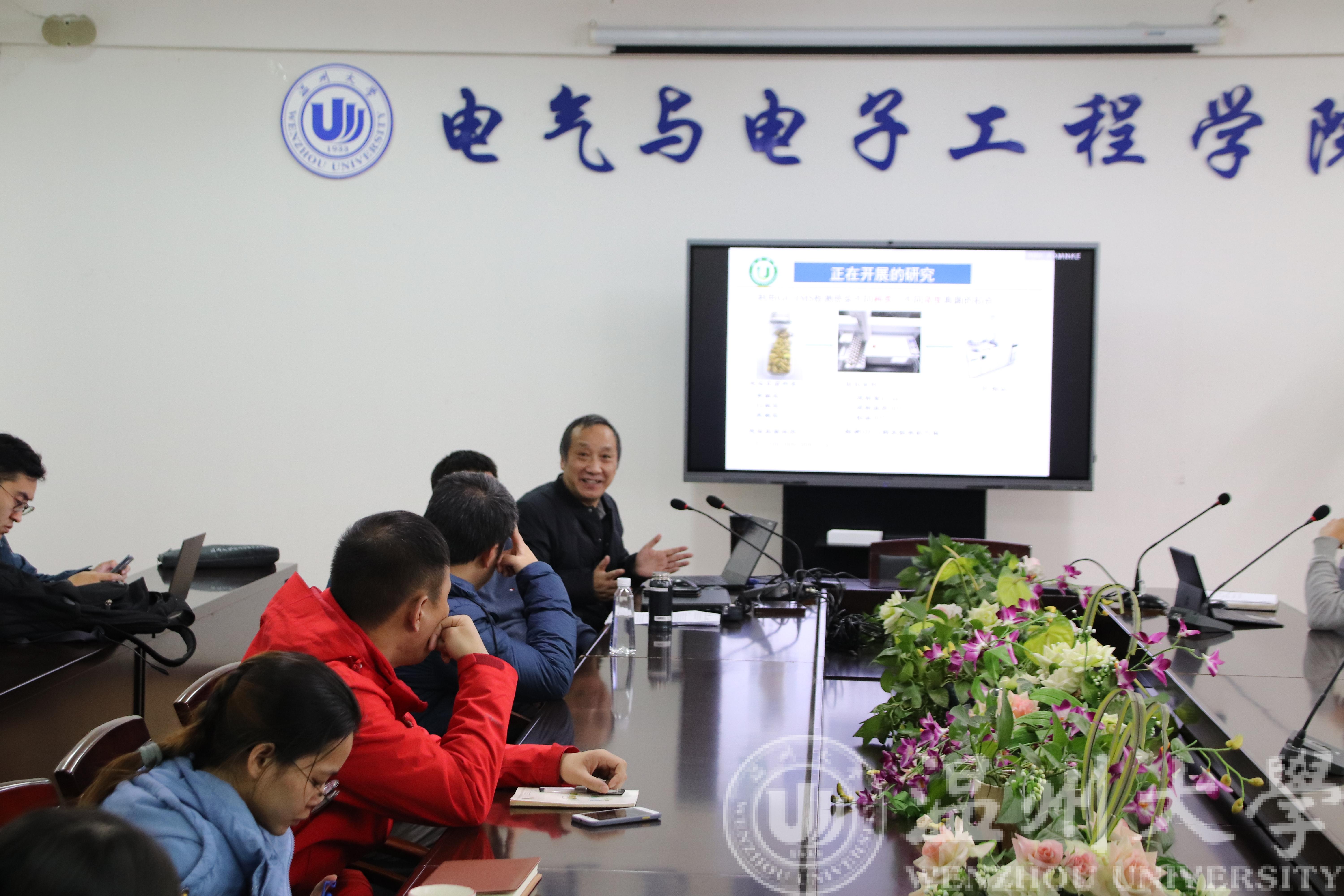 12月15日,江苏大学陈斌教授受邀来访成人网站 电气成人网站 ,并于15日下午14:00-16:00在电气成人网站 1A502会议室举办题为“基于GC-IMS联用技术在大米早期霉变监测中的研究研究”的学术报告。电气成人网站 电子系陈孝敬副院长、袁雷明老师热情接待了陈斌教授,并邀请课题组黄光造、石文、陈熙、蒋成玺等多位青年教师,及20多位研究生参加。