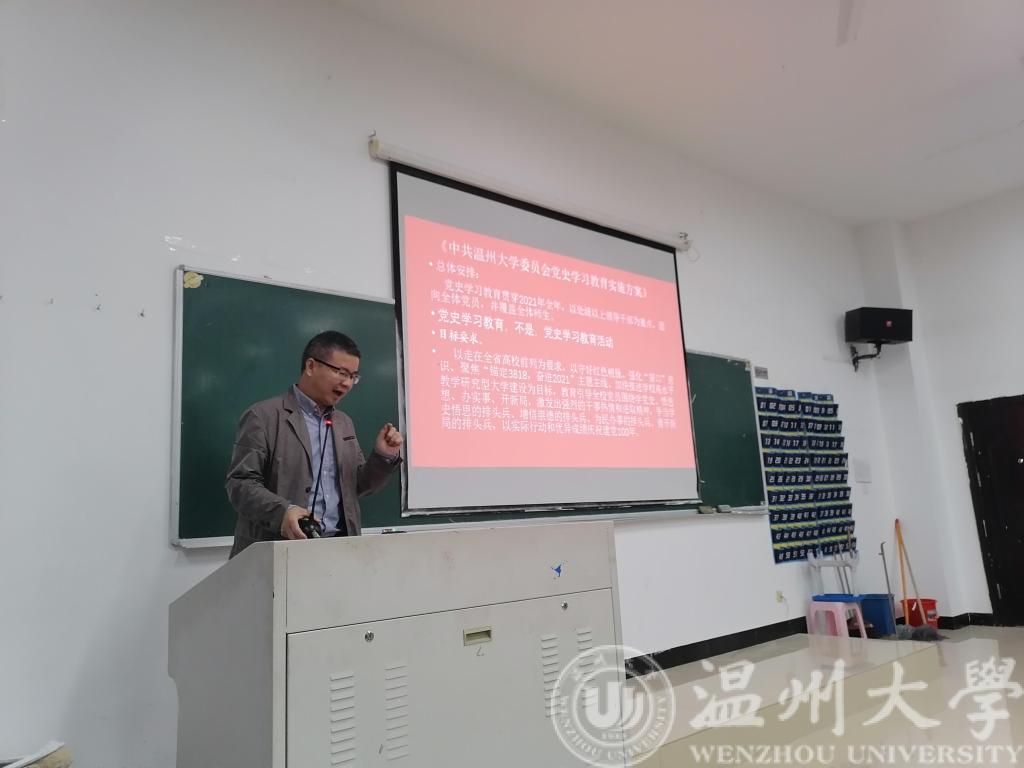 李方强书记首先传达了《中共成人网站 委员会党史学习教育实施方案》,重点传达了学校党史学习教育的总体要求和主要任务。其后,就成人网站 党委党史学习教育具体工作做了部署。最后,李方强书记带领大家一起学习了“习近平总书记在中央党史学习教育动员大会上的讲话精神”、“省委书记袁家军同志在浙江省党史学习教育动员部署会上的讲话精神”、“温州市委书记陈伟俊同志在温州市党史学习教育动员部署会上的讲话精神”。