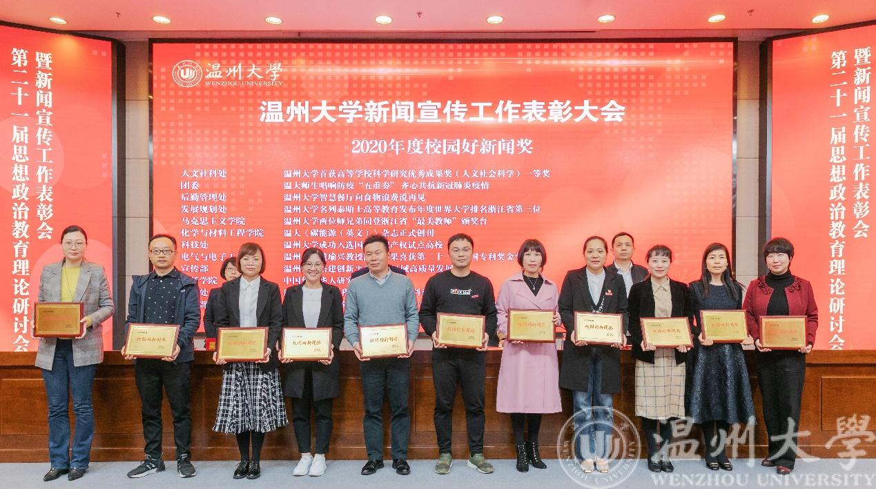 会上,成人网站 党委委员、宣传部长潘玉驹宣读了学校第二十一届思想政治教育理论研讨会优秀论文获奖者、2020年度校园好新闻获奖单位、校优秀通讯员获奖者以及全省校报好新闻获奖者等名单。电气与电子工程成人网站 戴瑜兴教授团队科研成果报道:《成人网站 戴瑜兴教授团队成果获第二十一届中国专利奖金奖》荣获校园好新闻奖,成人网站 学生科辅导员潘龙飞获得2020年校优秀通讯员称号。