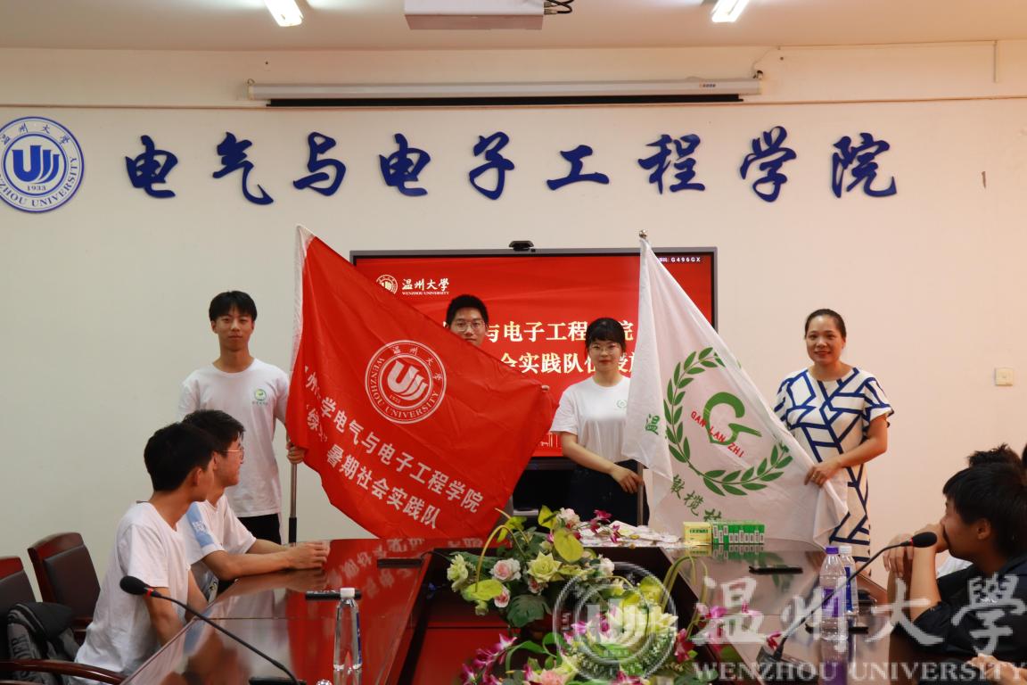 会议伊始,成人网站 党委副书记曾蓓蕾老师分别为成人网站 两支“常规”社会实践队——成人网站 绿芽暑期社会实践队、橄榄枝公益暑期社会实践队授旗。