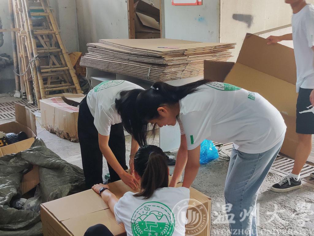 上午,橄榄枝暑期社会实践队部分队员在高教博园、瓯海区创荣广场以及商务中心进行了有关温州市在推进“无废城市”建设中居民环境意识的调查分析走访和相关问卷的发放,采访了与社区相关人物和居民等。与此同时,一部分队员在成人网站 地下室仓库整理了单脚鞋银行的鞋子,为今后的相关活动做准备。