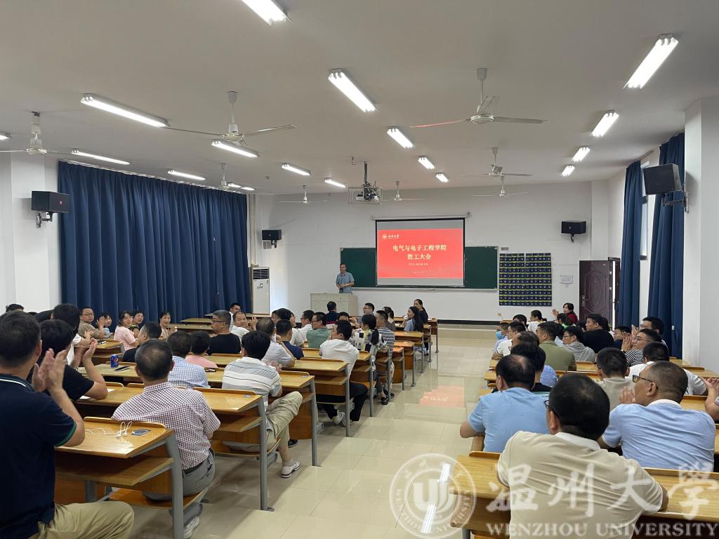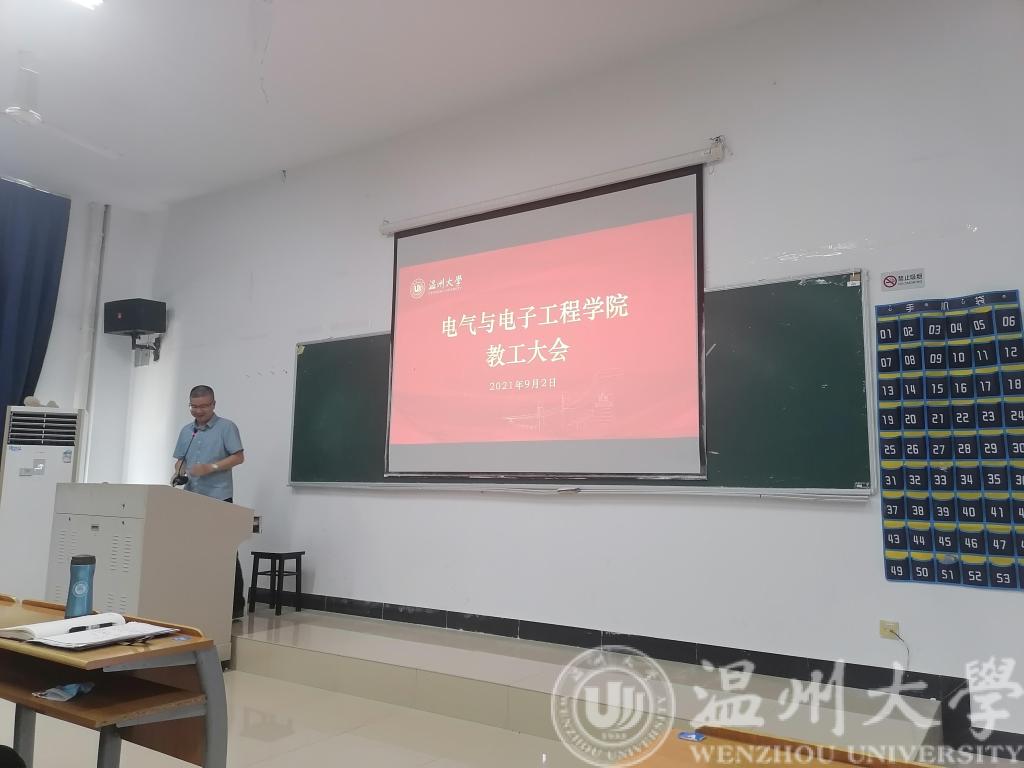 9月2日下午,电气与电子工程成人网站 在1B402召开全体教职工大会暨理论学习会。会议由成人网站 党委书记李方强主持,全院教职工参加会议。