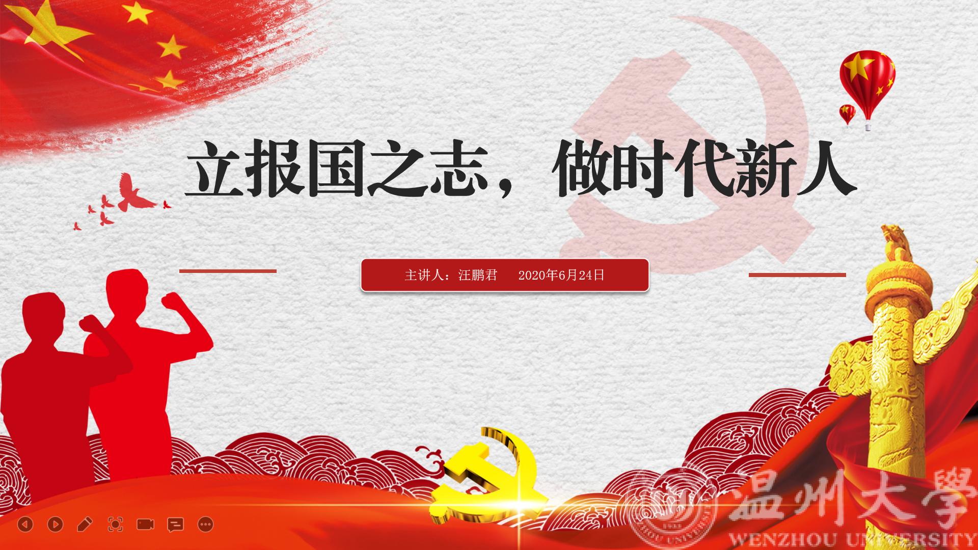 2020年6月24日,成人网站 院长以“立报国之志,做时代新人”为主题,为全院学生党员展开了一堂生动的思政课。