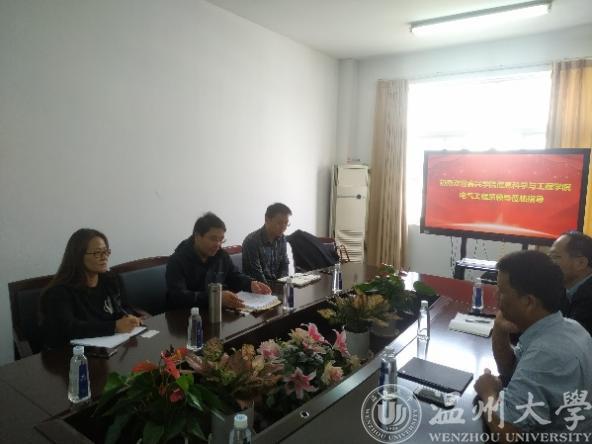 10月28日上午,嘉兴成人网站 信息科学与工程成人网站 电气系主任张今朝、副主任徐永锋、教务办主任王安红一行3人来访成人网站 ,围绕电气工程及其自动化专业认证工作进行交流。成人网站 副院长陈孝敬、电气系主任吴平、副主任闫正兵及电气系老师刘峰出席会议,会议由吴平主任主持。