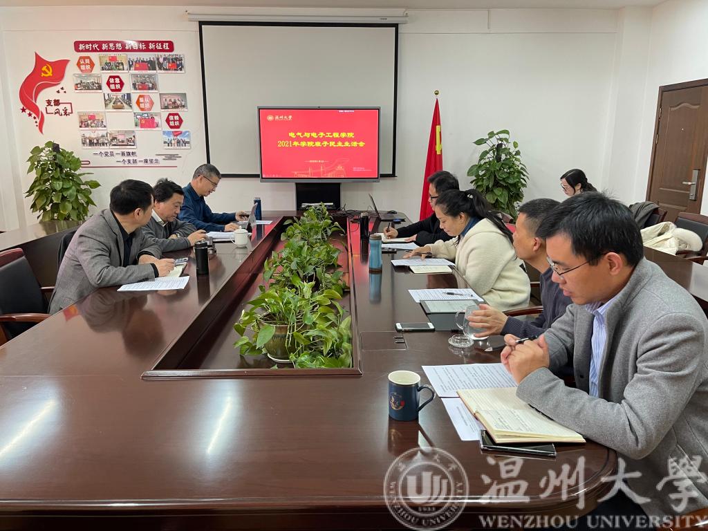 领导班子民主生活会。李方强书记首先汇报了2020年班子民主生活会师生提交意见的整改情况,然后通报了2021年征集到的师生意见和建议,并逐条进行责任分解与落实。接着班子成员逐一对照民主评议党员工作要求,对照个人检查材料,严肃认真开展批评与自我批评。