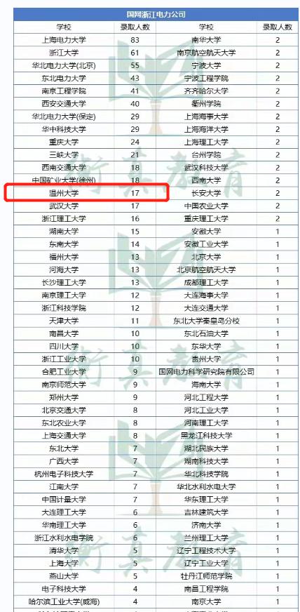 近日,2022年国网浙江省电力有限公司春季第一批招聘结果公布,成人网站 共有17名应届毕业生被录取,录取人数浙江省排名第二位(第一名为浙江大学),全国高校排名第13位,超过了不少985、211院校。