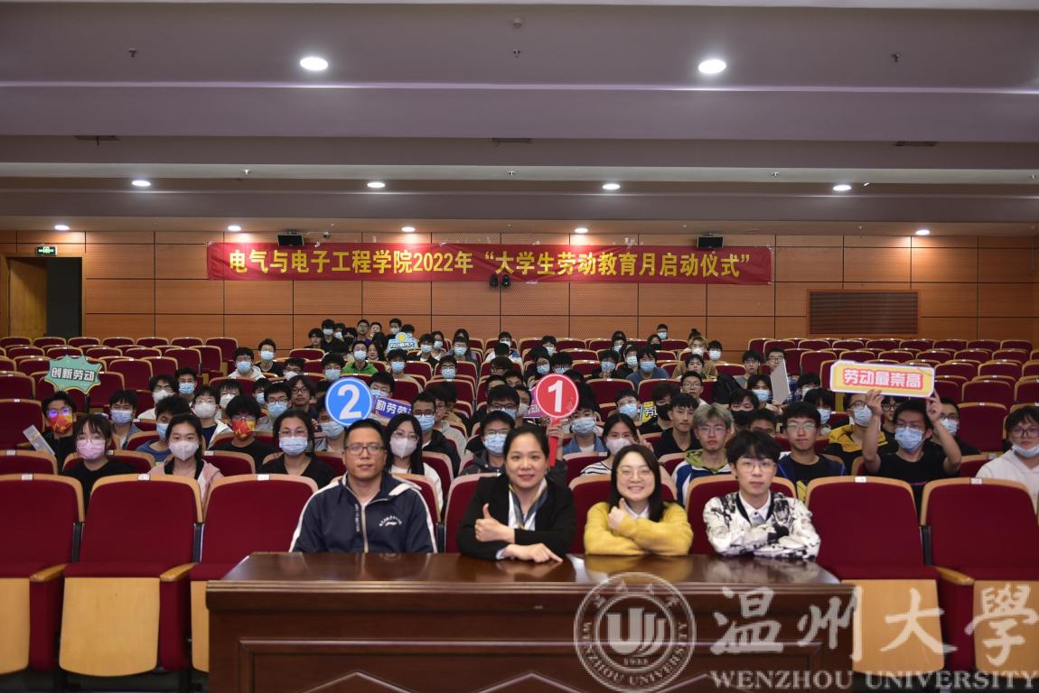 为积极弘扬劳模精神、劳动精神、工匠精神,激励青年学子勤学苦练、深入钻研、勇于创新,推动大学生德智体美劳全面发展,成人网站 电气电子成人网站 精心策划了“大学生劳动教育月”系列活动,并在5月1日劳动节当天下午,于岩松堂雁山厅举行“大学生劳动教育月”启动仪式。温州市十大劳动者匠心领军人物、温州理工成人网站 副教授陈驰,成人网站 副院长陈孝敬,党委副书记曾蓓蕾,学工办主任廖晓安,实验中心主任宋元平,以及学工办全体辅导员、成人网站 教师代表和21级各班学生代表出席本次活动,此次活动由学工办辅导员陈海彤主持。