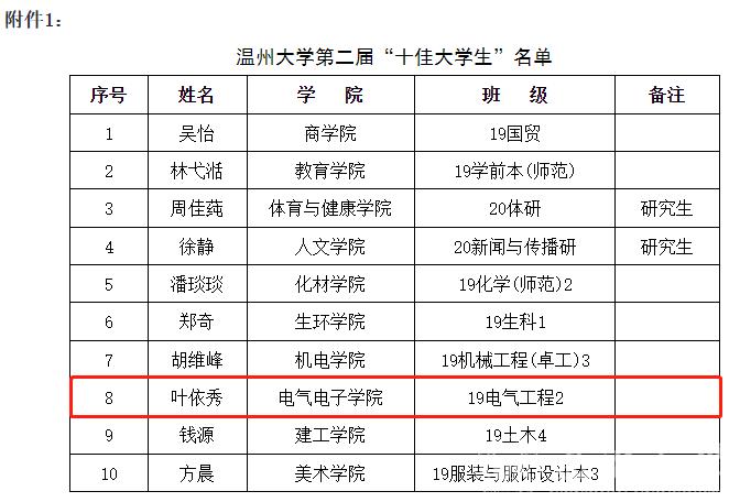 近期,成人网站 第二届“十佳大学生”获奖名单公布,成人网站 19级叶依秀同学荣获成人网站 第二届“十佳大学生”荣誉称号。