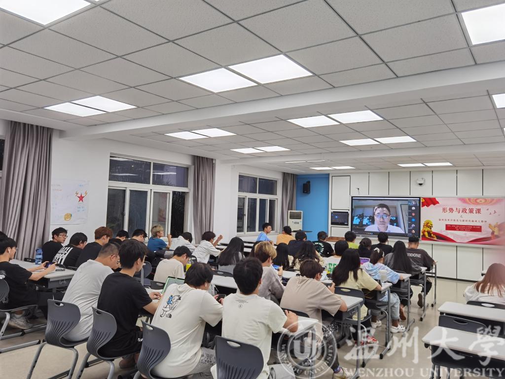 6月21日晚6.30分,成人网站 邀请马克思主义成人网站 孙邦金教授为成人网站 全体本科生研究生举行形势政治课讲座。此次形势政策课以“线上线下”相结合的形式开展,成人网站 全体本科生、研究生集体参加学习,其中21级本科生在教室集中学习观看。