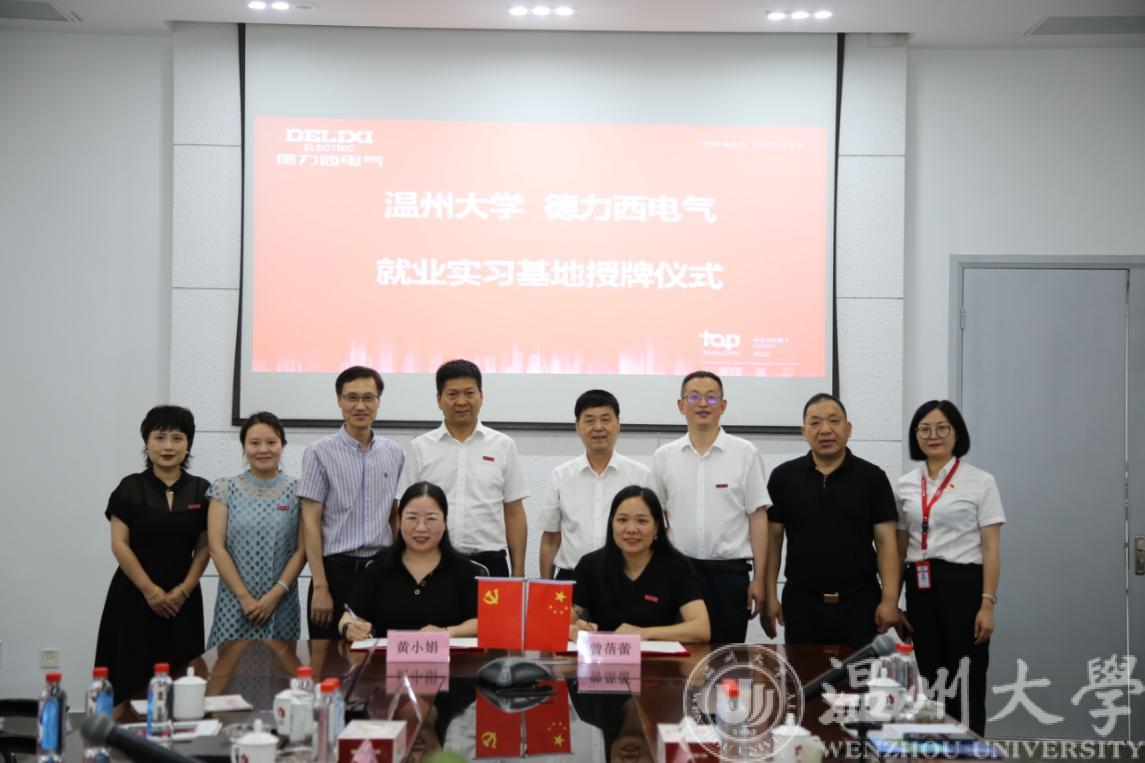 为推进校地融合,促进大学生就业工作,6月24日,我校党委副书记庄兴忠率招生与就业处处长蔡锋、副处长魏晓晓、成人网站 党委副书记曾蓓蕾、温大乐清工业研究院副院长舒亮、吴自然等赴乐清开展访企拓岗活动。乐清市人力资源和社会保障局副局长陈伟明等相关负责人一同前往德力西集团,成人网站 与德力西集团签订就业实习基地合作协议并举行授牌仪式。