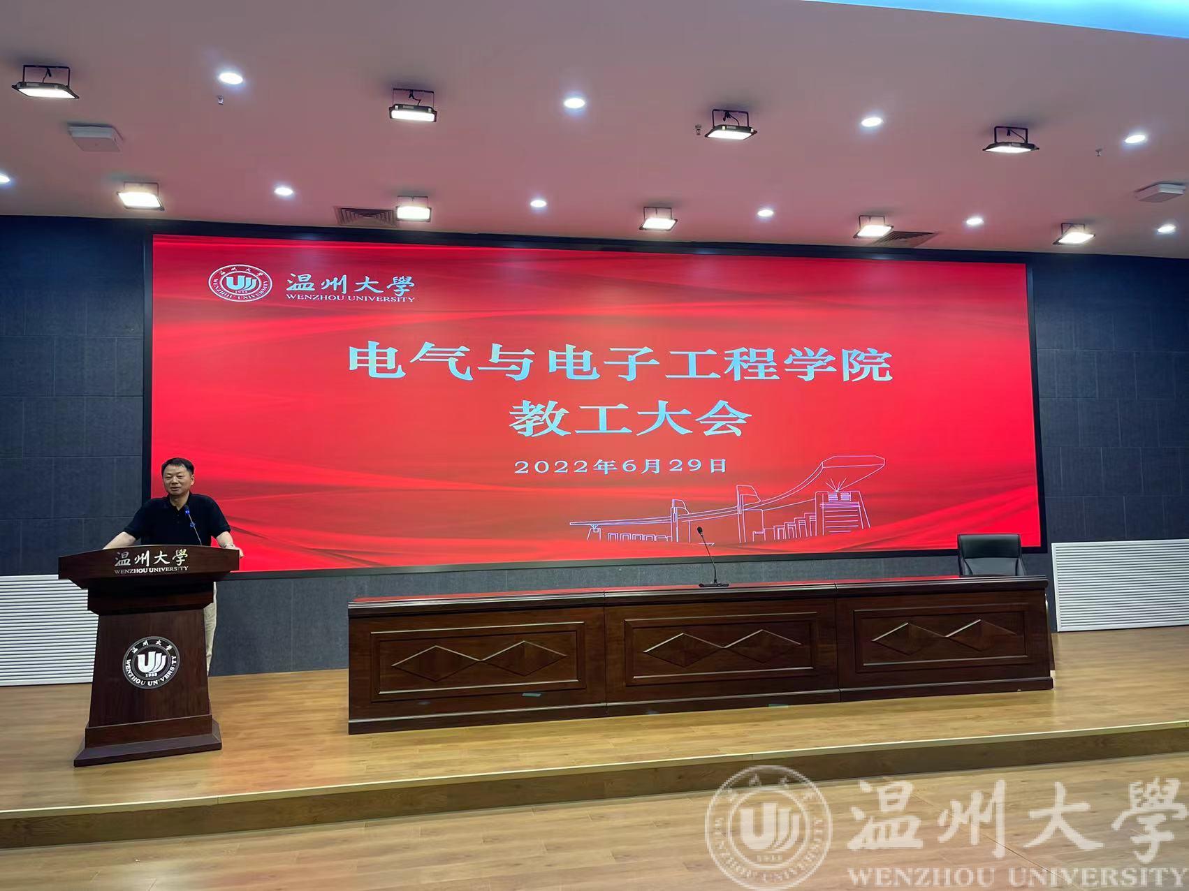6月29日上午,电气与电子工程成人网站 召开全院教职工大会。会议由成人网站 党委书记李方强主持,全院教职工参加会议。
