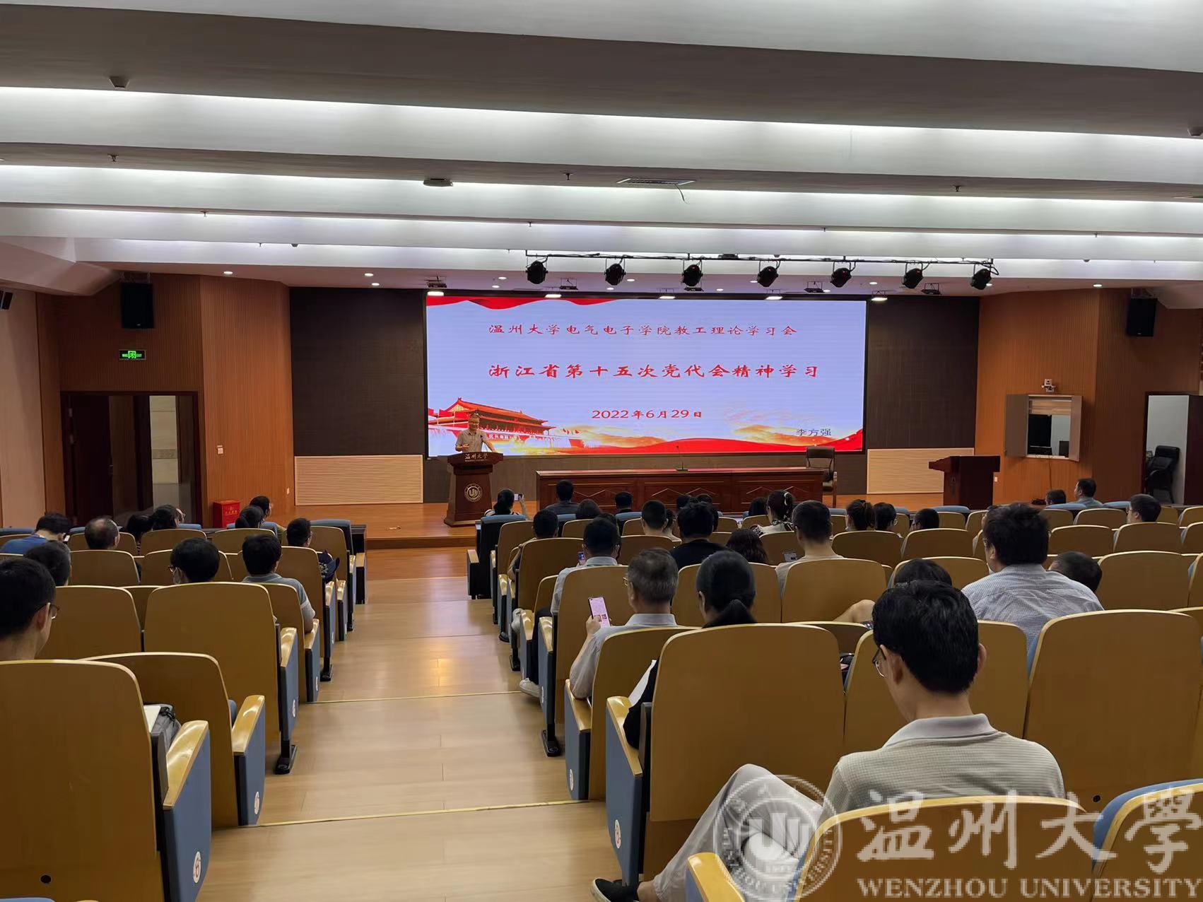 随后李方强书记带领全体教职工学习浙江省第十五次党代会精神,包括学习了会议内容、大会主题、党代会报告的主要内容等多个方面。