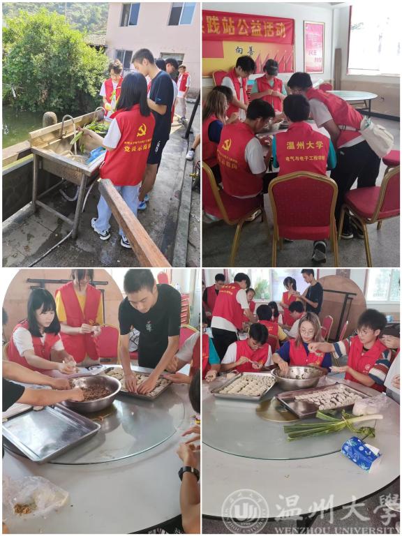 早上9:00整,志愿者们便从学校出发,一同前往舜岙村敬老院。参与活动的志愿者们配合默契,行动井然有序。首先,志愿者们在活动场地进行布置,打扫卫生,为紧接着的活动做准备。活动开始了,志愿者们密切分工、积极行动,有的人前去与老人用温州话聊天,让老人们倍感亲切;有的人前去洗菜;有的人在准备馅料;有的人在旁拍照留念……包饺子的过程中,全体志愿者一起动手合作,活动井然有序。饺子煮好了,志愿者们又热情地邀请现场的老人们一起品尝,并得到了老人们的一致好评。在活动的最后,志愿者们邀请老人与自己合影留念。敬老院负责人对志愿者们的志愿行动予以充分肯定,而老人们也对此赞不绝口,同学们在欢声笑语之中不知不觉度过了美好的一天。