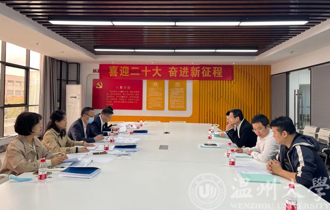 根据《共建成人网站 乐清工业研究院协议书》,2022年10月28日,由乐清市科技局牵头,乐清市财政局、乐清市经信局、乐清市委人才办等单位相关业务负责人组成考核组,对成人网站 乐清工业研究院开展年度(2021.6-2022.5)考核工作。研究院院长林振权向考核组汇报年度工作绩效。