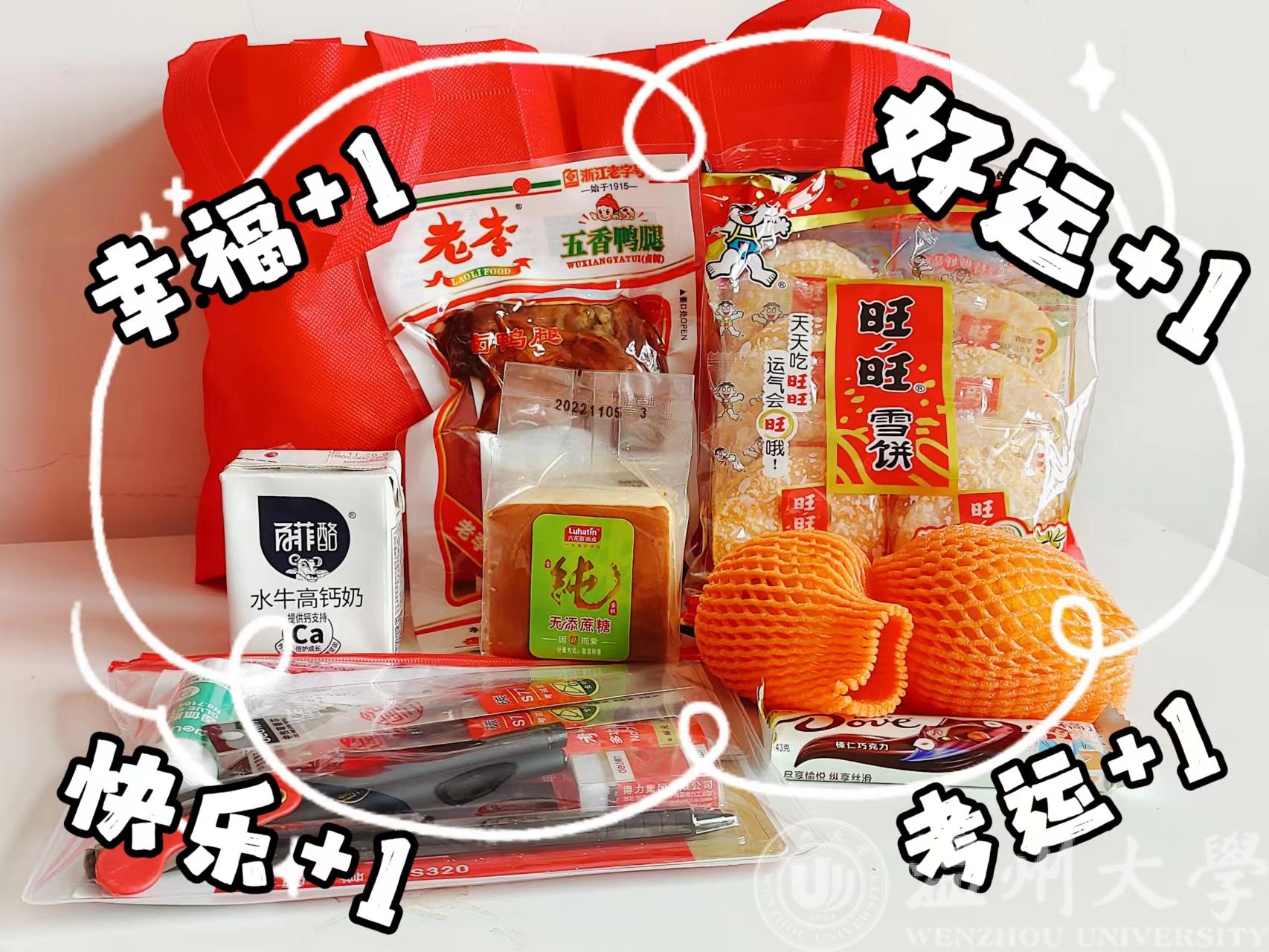 2022年11月24日,距离2023年全国硕士研究生招生考试还有30天,考研也进入紧张的冲刺阶段。为鼓舞考研学生信心,增强考试信心,电气与电子工程成人网站 开展2023届考研慰问活动,为广大备战考研学子送上“考研大礼包”,为他们鼓舞打气,加油助力。“考研大礼包”含有考试必备的涂卡笔、橡皮、小刀、胶棒等文具用品,还有寓意“糕”中的蛋糕,大“鸡”大利的鸡腿,考运“旺旺”的旺旺雪饼,“橙”功上岸的橙子,思路纵享“丝滑”的德芙巧克力等。