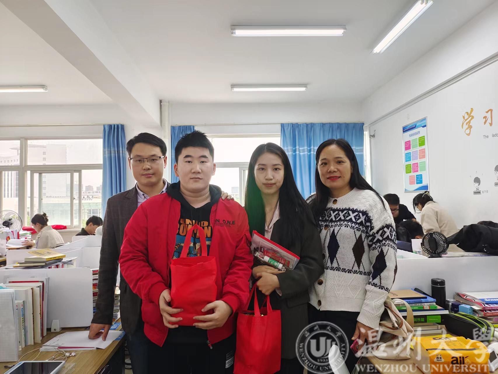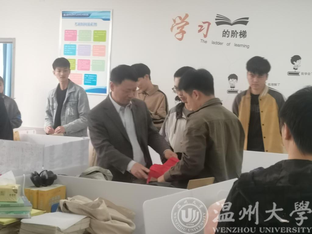 11月24日下午14:00,成人网站 院长汪鹏君、党委书记李方强、党委副书记曾蓓蕾及学工办辅导员来到成人网站 316和318考研自习室,为正在备考的考研学子送上成人网站 精心准备的“考研大礼包”。
