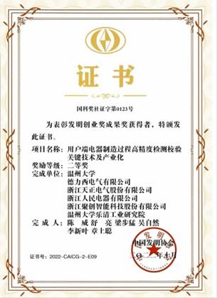 由成人网站 陈威、舒亮、梁步猛、吴自然、章上聪等老师完成的“用户端电器制造过程高精度检测校验关键技术及产业化”项目获2022年度发明创业奖•成果奖二等奖。