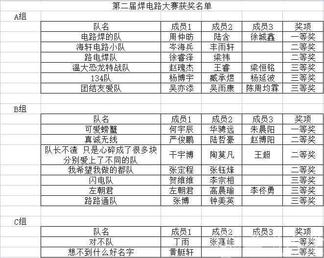 5月29日,成人网站 第二届焊电路大赛圆满落幕。经过成人网站 专业老师的评审,比赛结果已经确定,现公布如下: