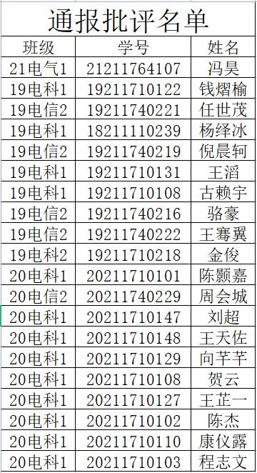 根据学校排查、成人网站 学工办核实,有以下同学没有遵守温州市和我校疫情防控要求:核酸检测间隔时长超72小时。根据《成人网站 新冠肺炎疫情防控期间学生纪律处分暂行规定》,结合成人网站 实际,给予以下同学全院通报批评。